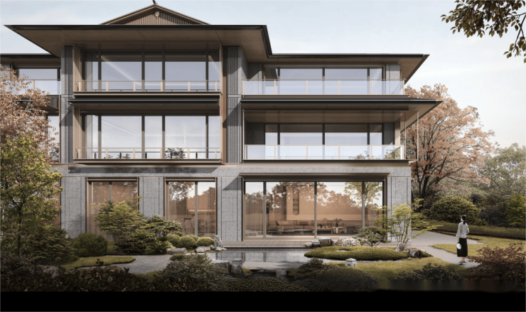 山水合院(约265-370㎡):真正的低密合院产品,私家庭院,有天有地,承载世家大宅的气度与情怀,定义了苏州顶级的居住形态。
