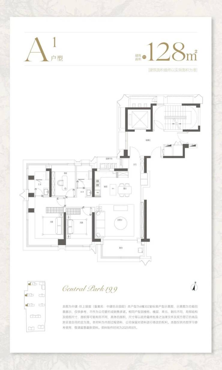 【中建·玖上琅宸官方售楼处咨询热线】400-812-3664(24小时服务,人工客服8:00-22:00) 约128㎡A户型,动静分离格局,功能区与休息区互不干扰,超大南向面宽+270°采光面,客厅开间达到了约5.4米,景观视野突出。