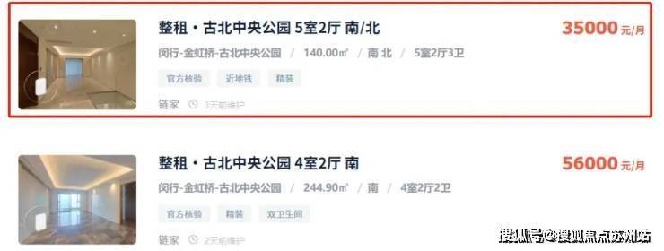 例如,古北99旁边的盛捷古北服务公寓和古北中央公园150㎡左右的户型月租金约为3.5万,也就是说,两年光是租金就要花费72万!再按总价1800万级计算它们的租售比,甚至高达2.5%!