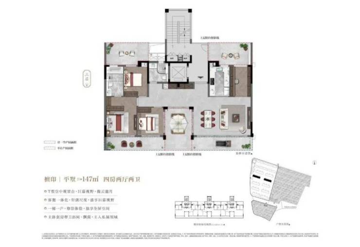 洋房户型普遍采用LDKB一体化设计(即客厅、餐厅、厨房、阳台连通),空间敞亮;多开间朝南,采光充足;主卧套房设计,私密性好。叠墅产品则拥有更丰富的空间层次,例如约178㎡的叠墅,能做到四房两厅四卫,上下三层,双主卧套房设计,居住体验堪比独栋别墅。
