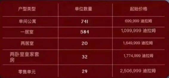 699,999AED起/套(约138万人民比起)
