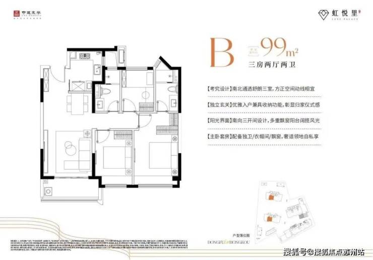 99平做到了3房2卫格局,空间布局合理,不浪费面积。