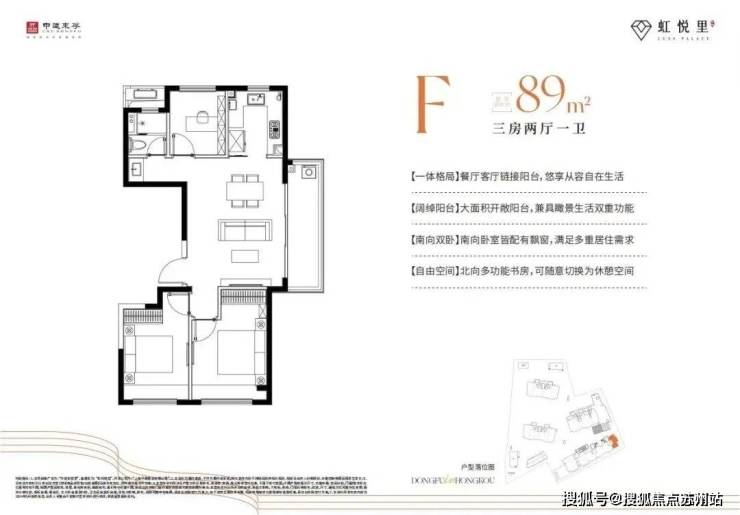 项目推出的最小面积79平2房,适合人数较少的青年家庭;