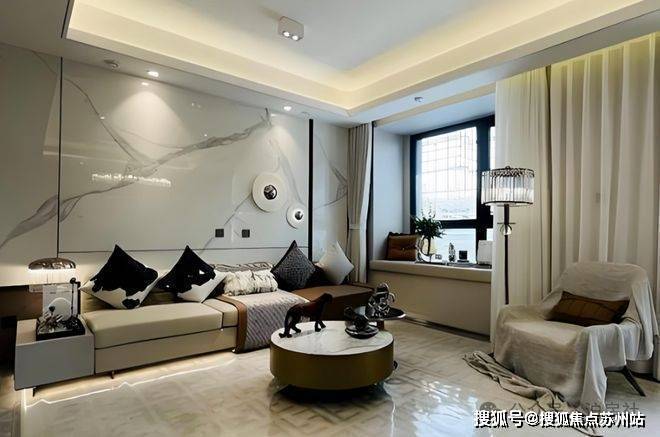 以浅灰、米白为主基调,局部搭配深灰色线条,提升建筑层次感