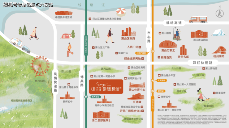 自驾:市心路中轴串联奥体与钱江,15分钟直达滨江奥体核心,彩虹快速路30分钟通勤全城。