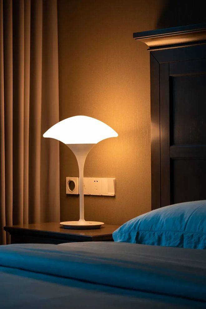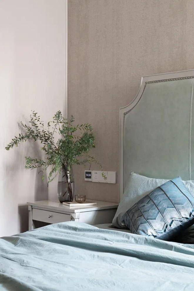 灰咖色的墙面空间与窗帘,在床头柜摆一张暖色调的台灯,让父母房满屋都是朴素的温馨感。