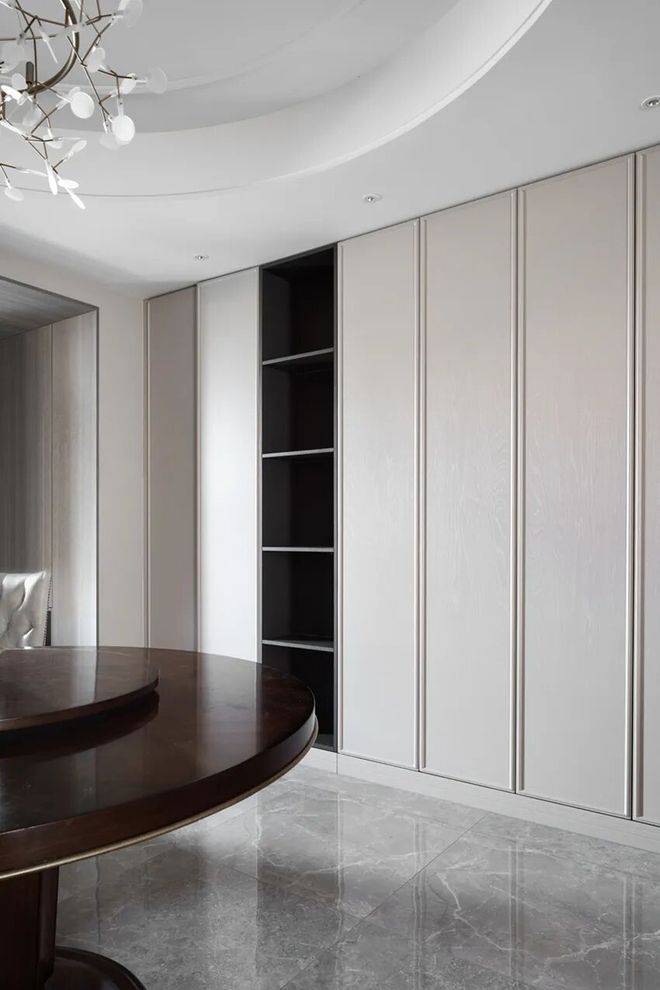餐厅侧边的收纳柜里还加入了开放格架,也是提供了一种别样有趣的用餐与收纳体验。