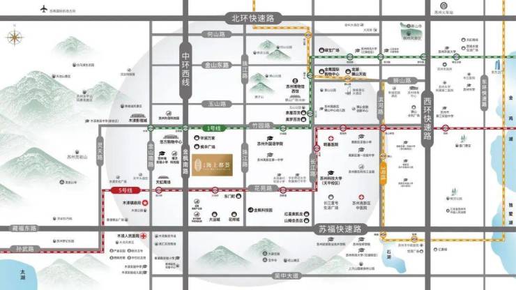 【立体交通与繁华商圈】 住在这里,出行和逛街都太方便了。门口就是金枫路,紧邻苏州中环西线和苏福快速路,开车四通八达。地铁也有双线护航,距离1号线金枫路站和5号线大治桥站都很近,公共交通无忧。这为上实·海上都荟的业主提供了极为便利的立体交通网络。 生活购物更是享受,金枫、木渎、狮山三大商圈环绕,大运城、悠方、美罗、绿宝、龙湖天街等大型商场都在周边,繁华生活举步即达,充分满足了改善置业对生活配套的高要求。