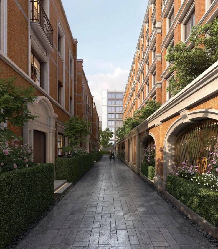 项目由GOA大象设计操刀,汲取外滩西式古典建筑风格。以红砖为主材,复刻老石库门的浪漫风貌,力求打造为一处“新时代里弄住宅”。同时将保留项目所在区域的地标和文化标志建筑,包括西本愿寺、景林庐等文保建筑。