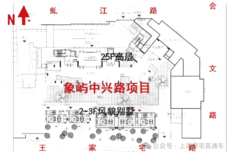象屿·苏河琹庐由象屿地产集团打造,项目由1幢26层的高层住宅(5-25层为商品房,共132套)和16幢2-3层的风貌别墅组成。容积率2.67,绿化率35%,车位配比约1:1.2,实行人车分流。项目注重海派文化的传承与创新。高层立面以中国传统“多宝格”为灵感,别墅则提取了海派经典元素并进行现代演绎。小区内还规划了海派风华园林以及包含艺术沙龙、共享办公、亲子互动、健身社交、文化展览等功能的 “海派GLOCAL生活馆” 为居者提供全龄段生活需求。