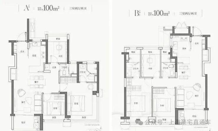 户型信息:高层100㎡小三房,别墅190-220㎡风貌别墅