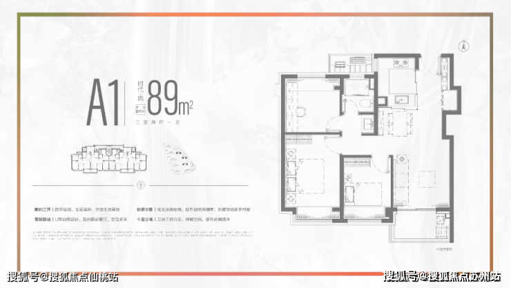 建面约89㎡(3室2厅1卫)