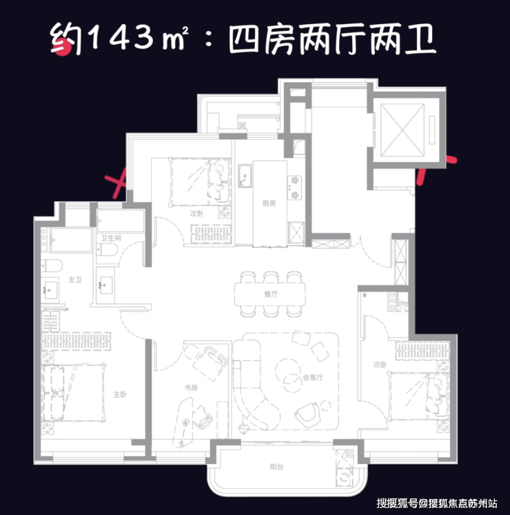 户型方面,二批次即将加推的 主力是建筑面积约105平3房、建筑面积约143平4房两种户型。