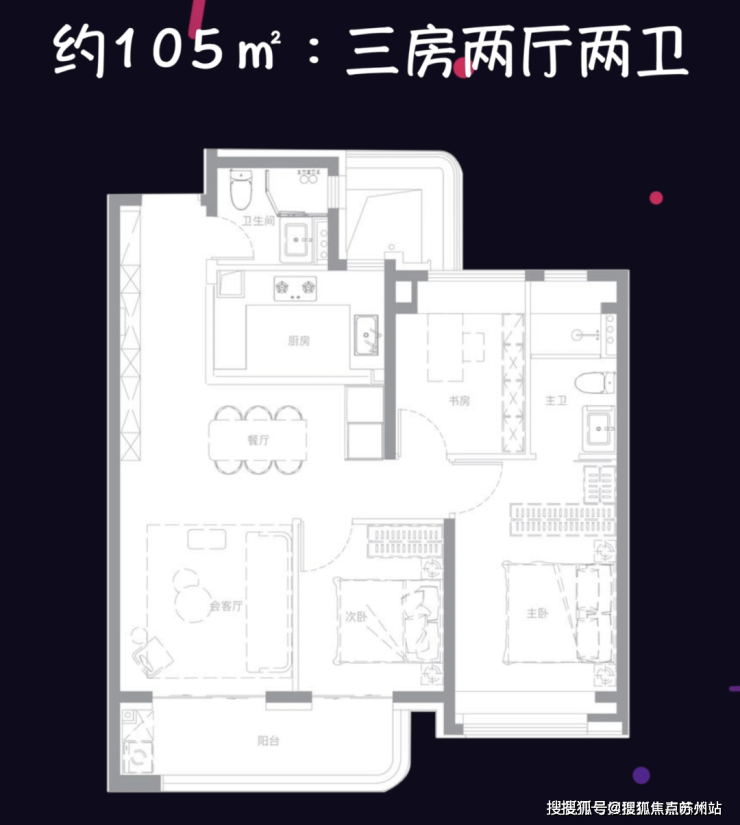 105平3房2厅2卫,采用动静分离设计,总价预计1000万出头起步。