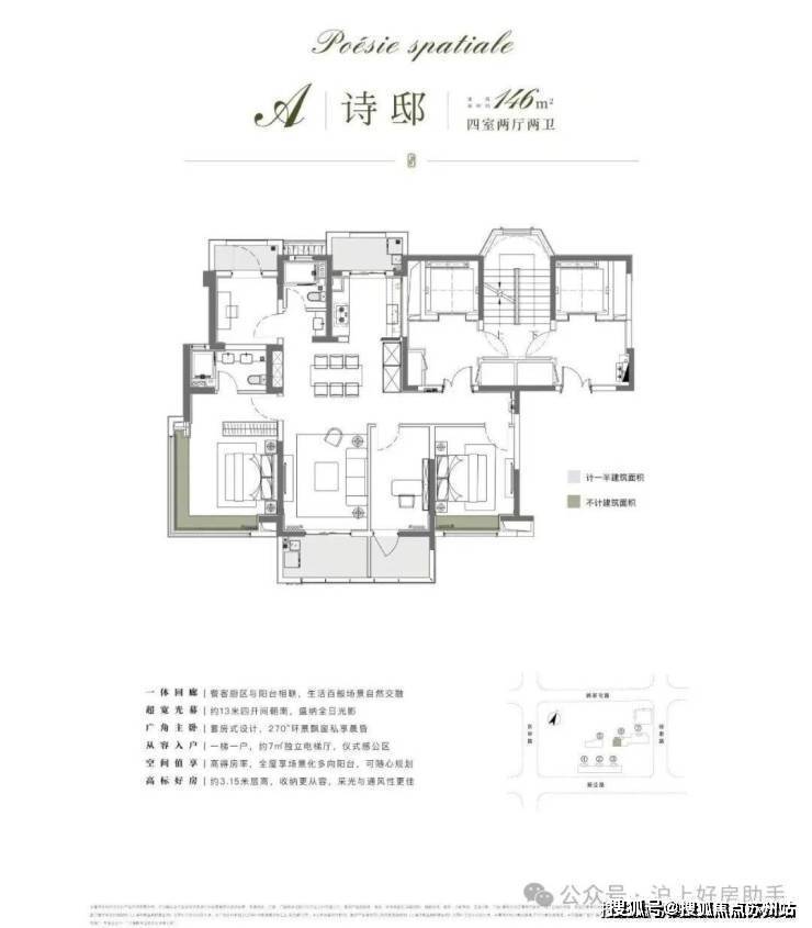 建面约144㎡和146㎡的4房甚至做了4个阳台,我印象中上海从来没有过这样的大手笔,这些延伸空间可以随心打造成茶室、小花园,或者高效的家政空间。