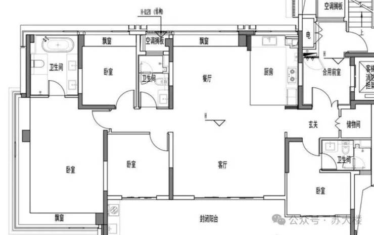 建面约178㎡4房3卫 西边户