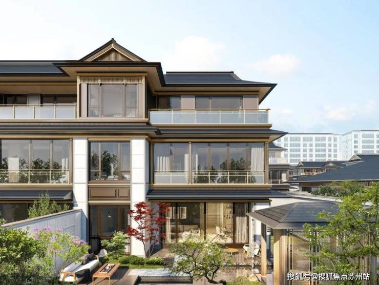 蓝城·湖畔江南里对宋式建筑中独有的普拍枋进行提炼转译,鼎礼世家望族的门楣。