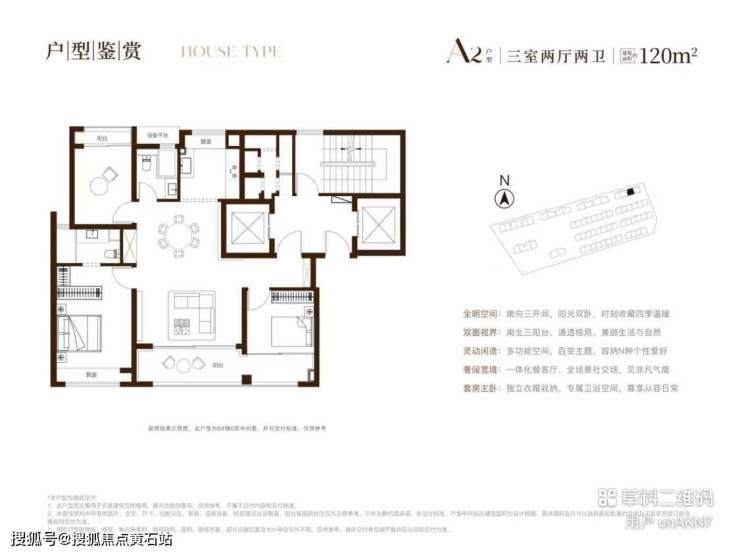 建筑面积约120㎡三房两厅两卫使用率约86%;