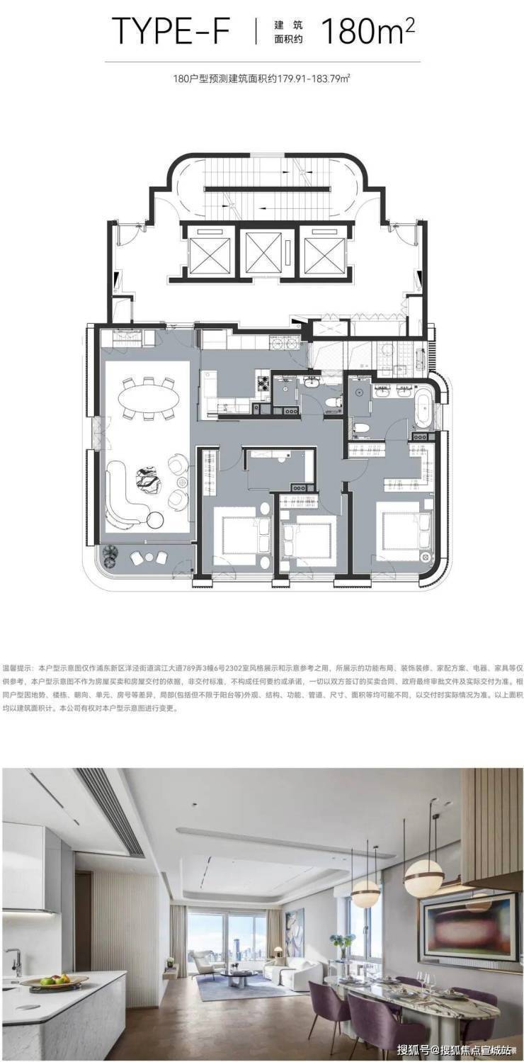 建面约180m²样板间视频如下: