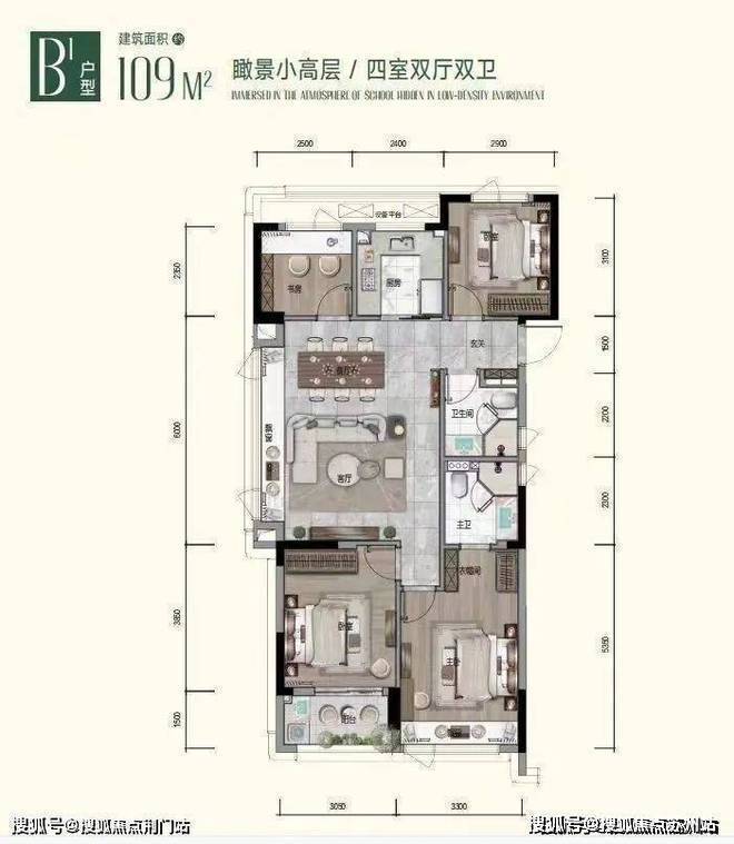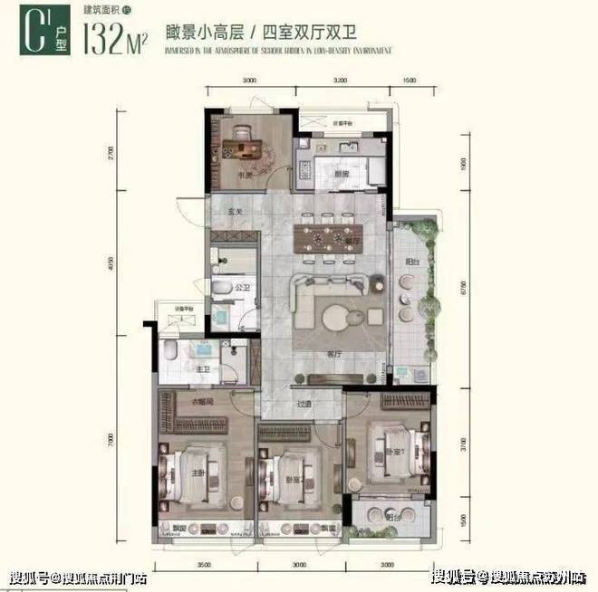 以一套典型的改善型户型为例,该户型采用了南北通透的设计,客厅和餐厅相连,形成一个宽敞明亮的公共活动空间。卧室和书房则分布在南北两侧,保证了良好的私密性和安静性。