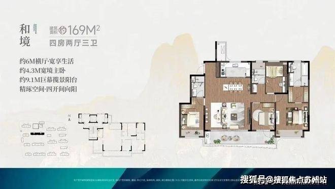 规划13幢建面约105-190㎡舒适洋房住区。融合苏式美学风格,构筑1轴9境3座人文会客厅