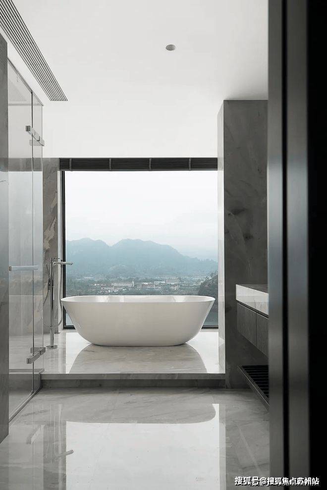 山峰在晨曦的朦胧中,轮廓若隐若现,让人无法抗拒它的美丽。而室内简约的设计风格,与窗外的美景相得益彰,让人无法抗拒这样的组合。