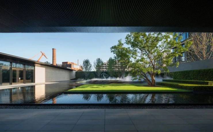 与连廊衔接的地下会所同为SCDA作品,延续了整体布局秩序与平衡,通过中庭花园和超白玻璃的大量使用,将自然光引入地下,使整个会所显得更加开阔和明亮,当然,这席高定艺术会所仅向小区业主开放~