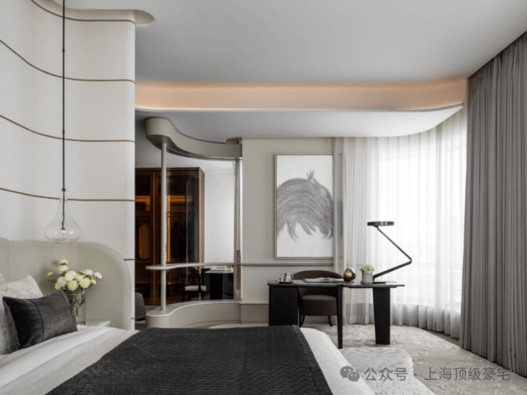主卧豪华套房,自带弧形阳台,让赏景休闲成为生活的一部分.