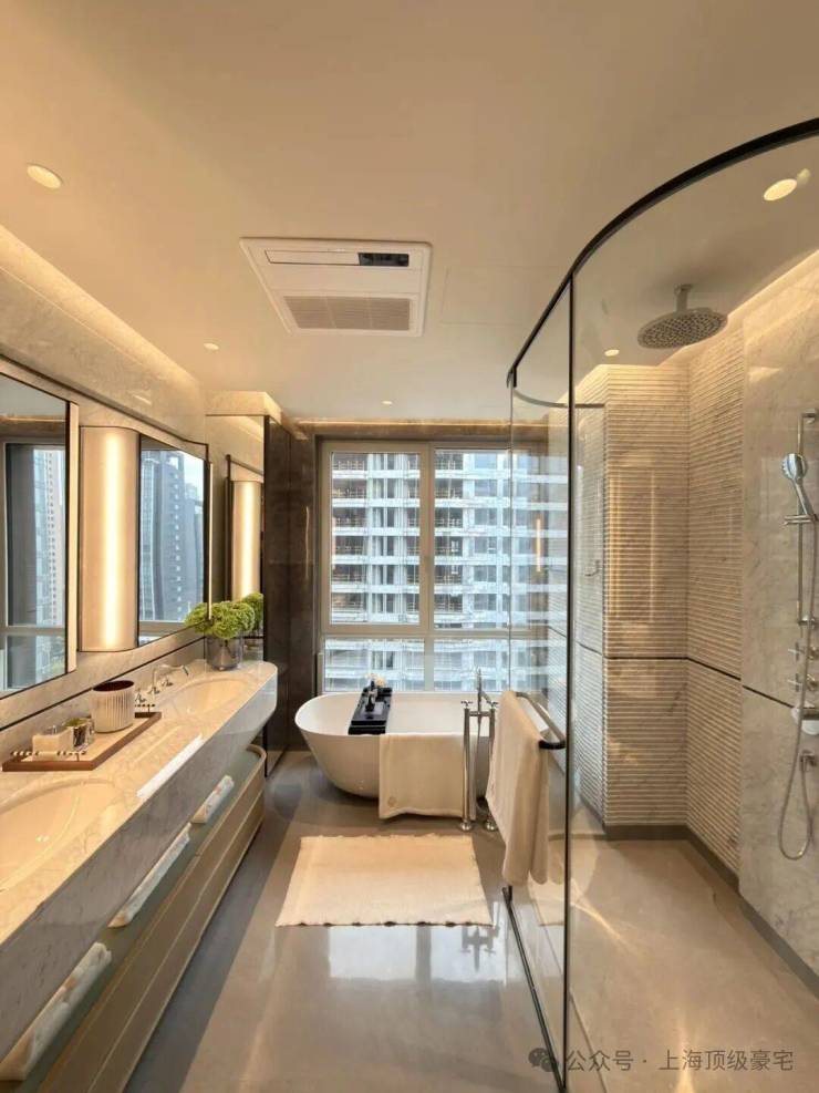 双台盆豪华主卫,带大尺度淋浴空间,同样采用了弧形设计: