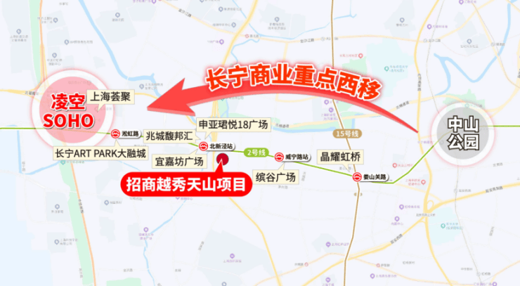 和樾长宁所在的天山板块,直距地铁2号线威宁路仅800米,北新泾仅300米,西接中环、东邻虹桥商务区,更与苏州河生态廊道仅一步之遥——这里不仅是交通枢纽,更是长宁“西进战略”下产城融合的黄金锚点.