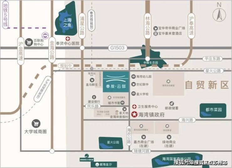 交通方面, 纵横立体路网 闲适与繁华随意切换 林海公路/浦星公路/沪金高速/沪奉高速(建设中)/金海公路多条纵线与绕城高速、申嘉湖高速双横向干道组成立体路网,辐射大浦东黄金生活圈。规划中的市域奉贤线直抵海湾大学城,项目门口即有公交站点布局,便捷路网,畅享上海主场生活。