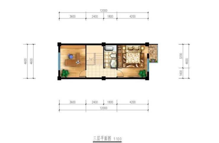 内部层高:一楼4.2米、二楼3.3米、三楼3.3米、阁楼3米.