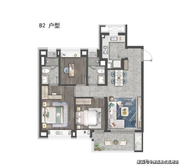 建面约105㎡为5.1米宽厅设计外接大阳台,这对黄金组合一方面撑开户内尺度,另一方面也让通风和采光俱佳.