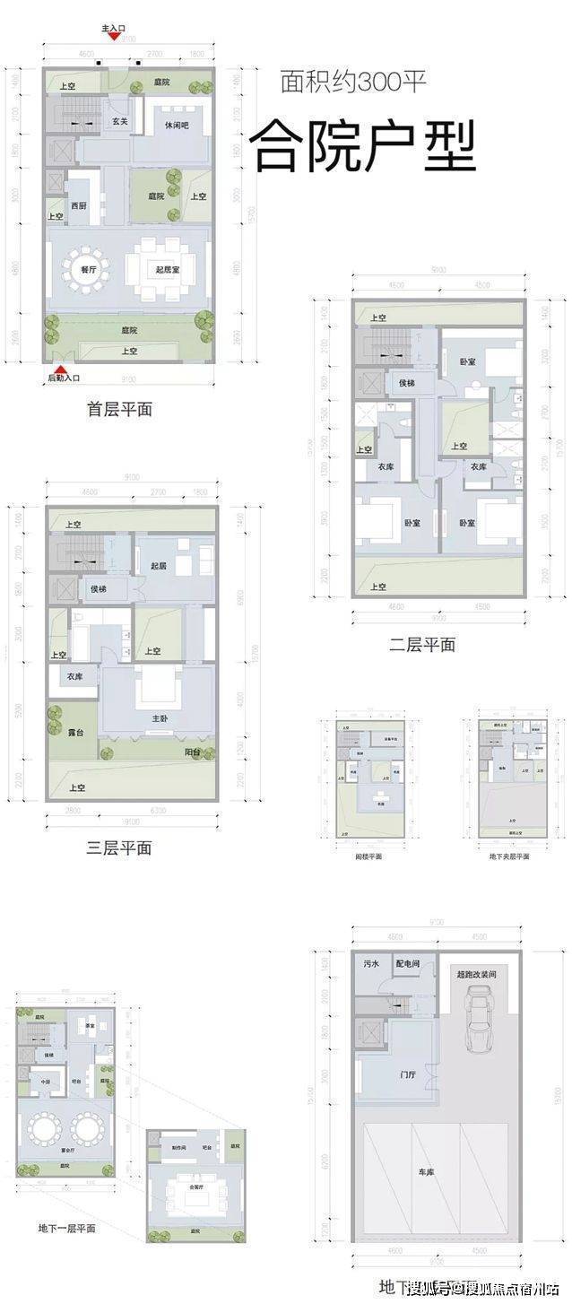 ·风貌联排合院151套(建面约250-1200㎡,主力户型约300-500㎡)
