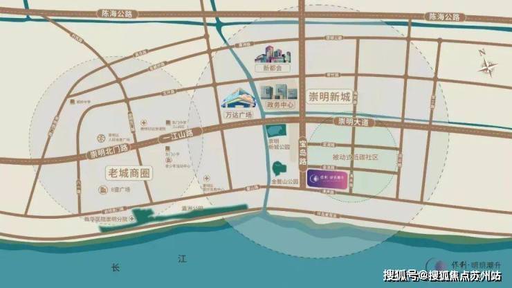 【生态环绕】新城公园、金鳌山公园、瀛洲公园三大城市公园环绕,南临长江,北临崇明生态水系。