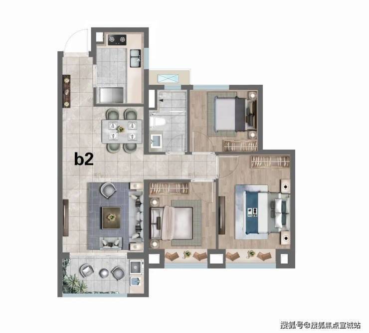 B2户型:建筑面积约91㎡3房2厅1卫