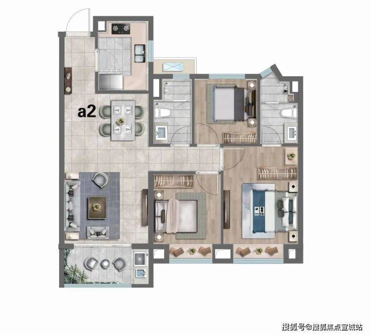 A2户型:建筑面积约97㎡3房2厅2卫