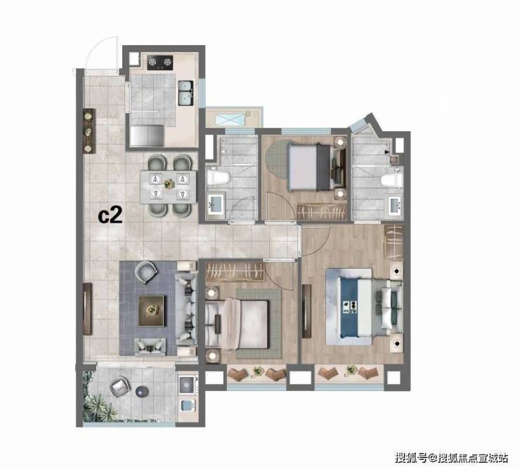 C2户型:建筑面积约98㎡3房2厅2卫