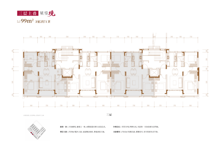 建面约82㎡2房2厅2卫/110㎡3房2厅2卫(三层上叠):