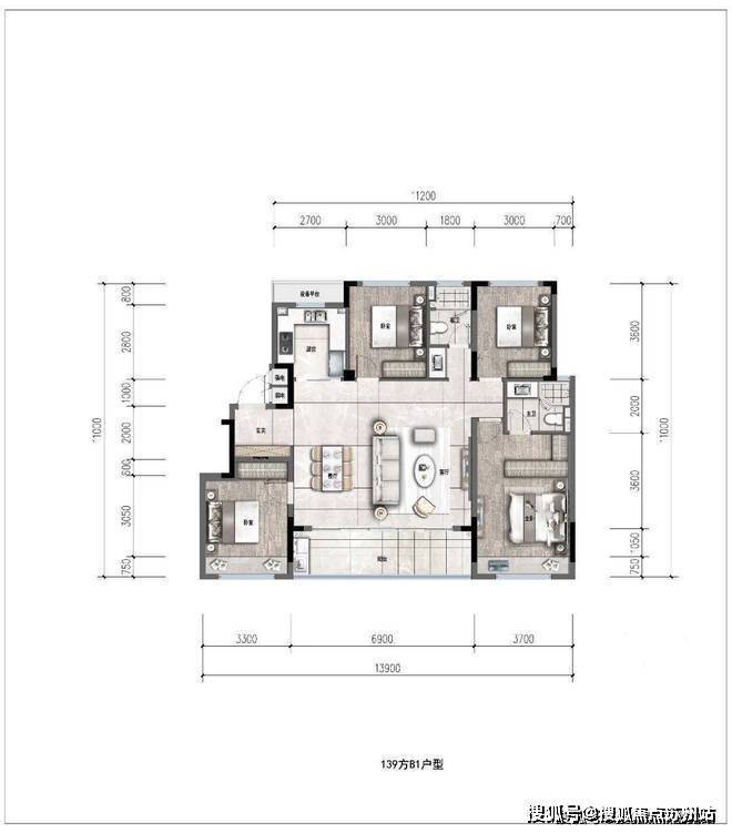 约127㎡经典四叶草户型,全明通透,4个功能间分别位于四角,正好契合了当下注重隐私的居住潮流。