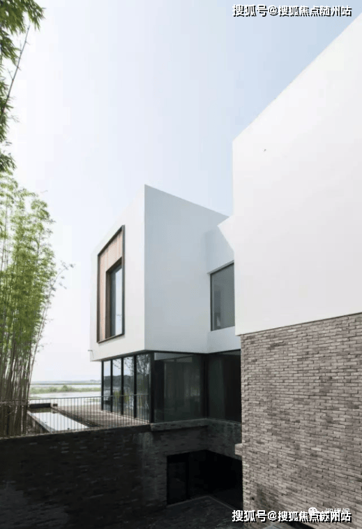 别墅外墙,古色青砖,细密的水刷石,留着打磨的痕迹,白色与青色的立面和谐统一