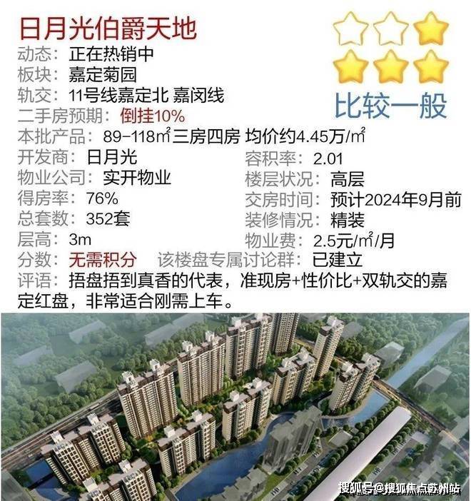 最新消息,嘉定菊园「日月光伯爵天地」正在热销中!推出建面约89-118㎡三房四房,均价约4.45万/㎡!