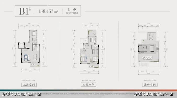 以建筑面积约160㎡的户型为例,四室两厅三卫的设计,面宽达到了惊人的约16.4m(双层),足以媲美市面上一些200方的大户型叠墅。 户型整体尺度感很强,尤其是主卧,空间豪华,甚至还规划有一个“X”空间,娱乐、办公、休憩随意切换。