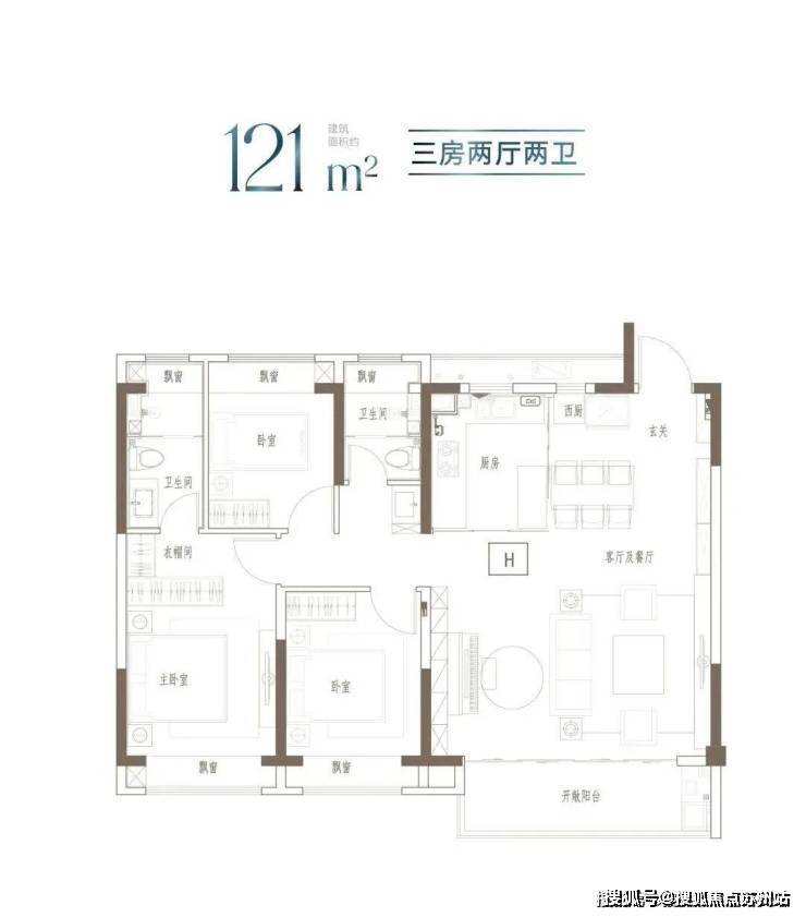 建面约100m²的阳光三房,同等面积更多功能;宽幅南向观景阳台,把居住变成风景;步入式衣帽间,给予生活更多从容。