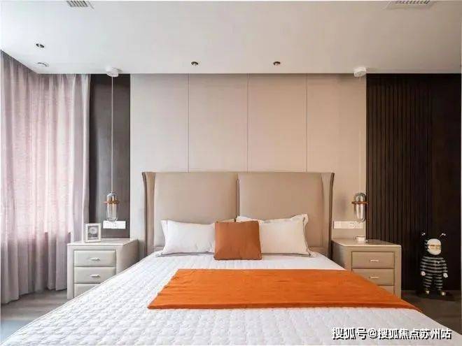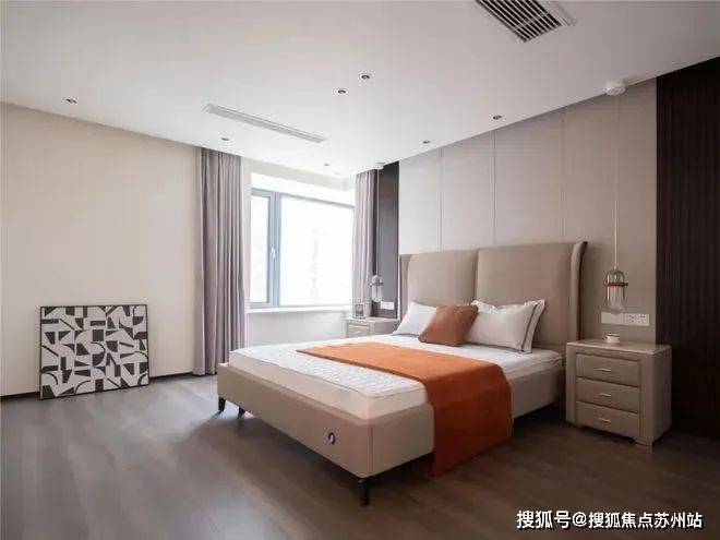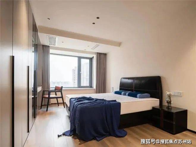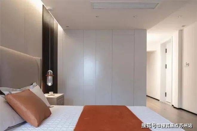 主卧同样采用全内嵌筒灯,让空间区域照明更加均匀舒适,空间内各功能区动线便捷,彼此开放又各自独立,私密又方便。