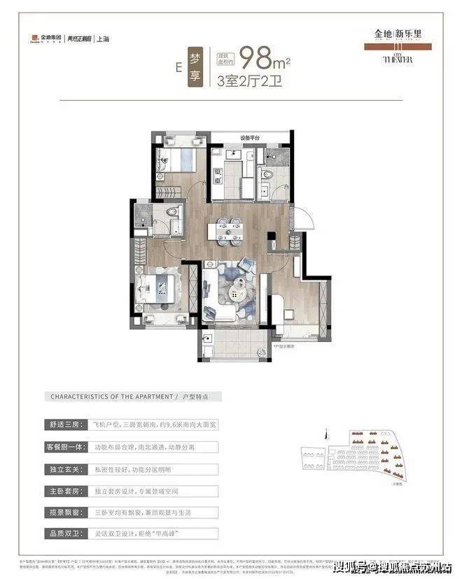这是目前在售的建面约98㎡3房2厅2卫户型。