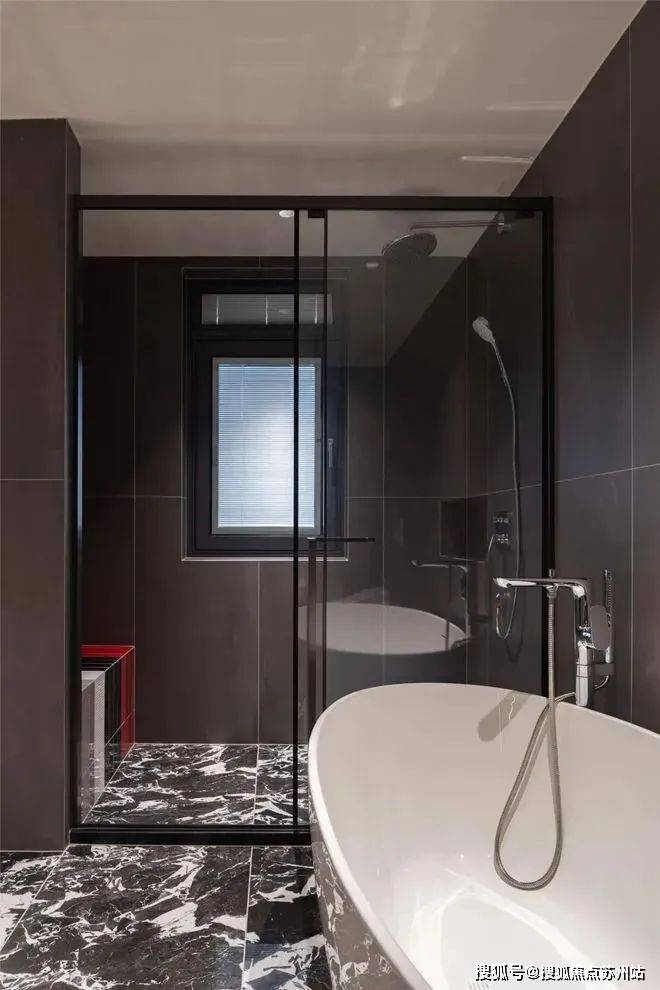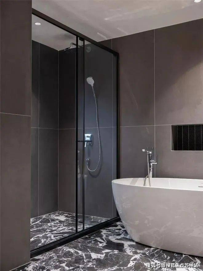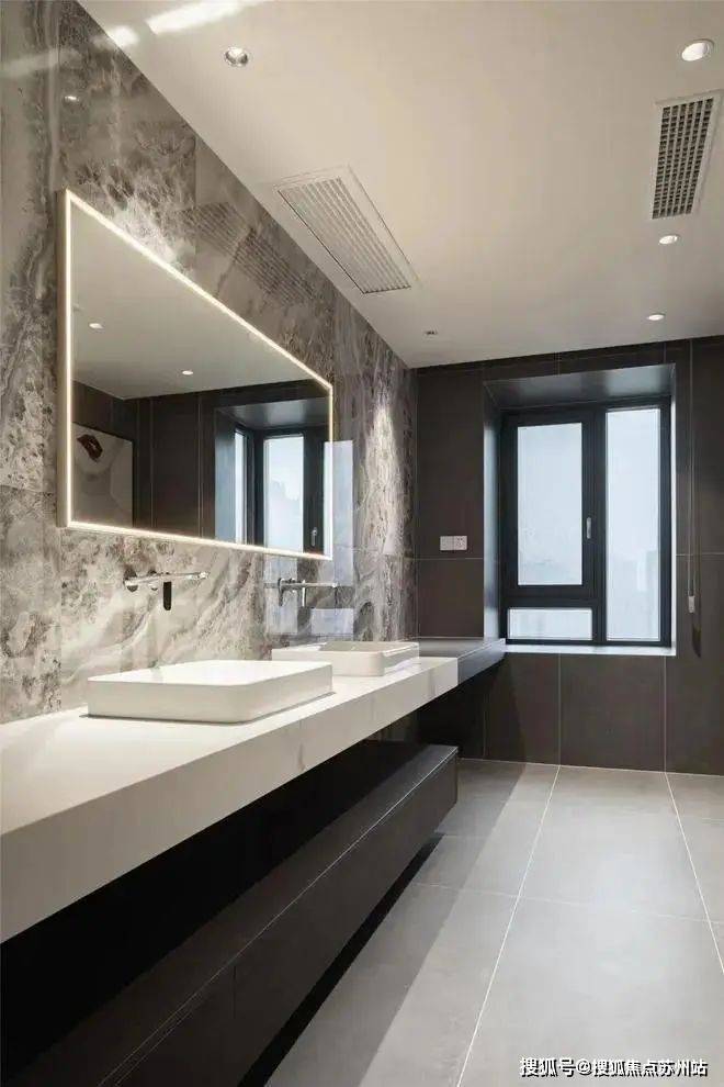 客卫双洗漱台设计非常贴心,奢阔的台面让男女主人的洗漱更为优雅从容,悬空式的浴室柜让台面空无一物,高端的生活方式,让居住于此的人,能时时刻刻的保持精致优雅。
