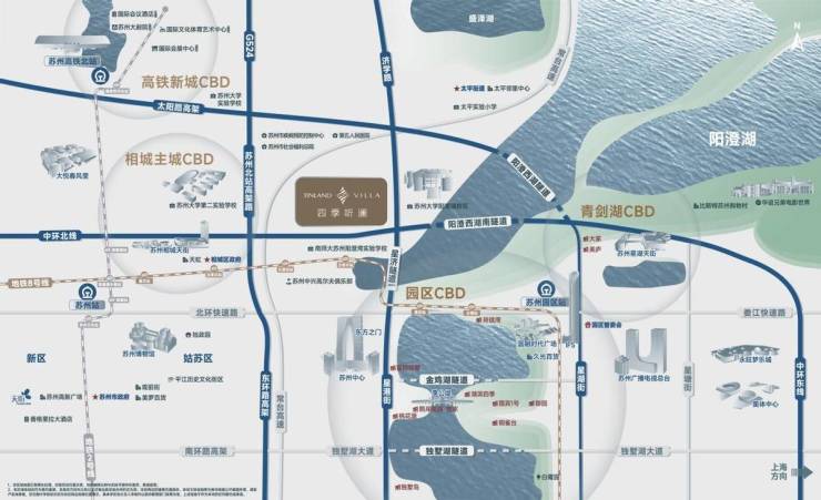 中环北线、太阳路高架、阳澄西湖隧道等城市动脉环伺,一脚油门直达园区湖东、苏州中心、相城核心。
