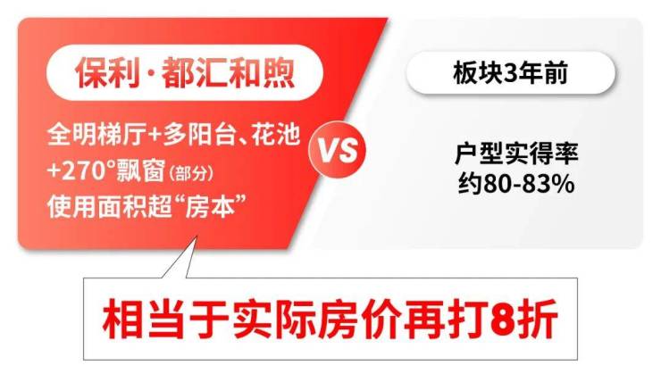 以前户型实得率约80%-83%,而项目带全明梯厅+多阳台、花池+270°转角飘窗(部分),可用面积远超“房本”,折算下来实际单价相当于以前项目再打8折!