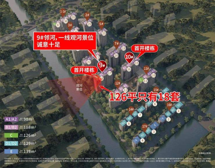 其中9#更是邻河,尤其126㎡户型拥一线河景视野,不过这次只有18套,手慢无。